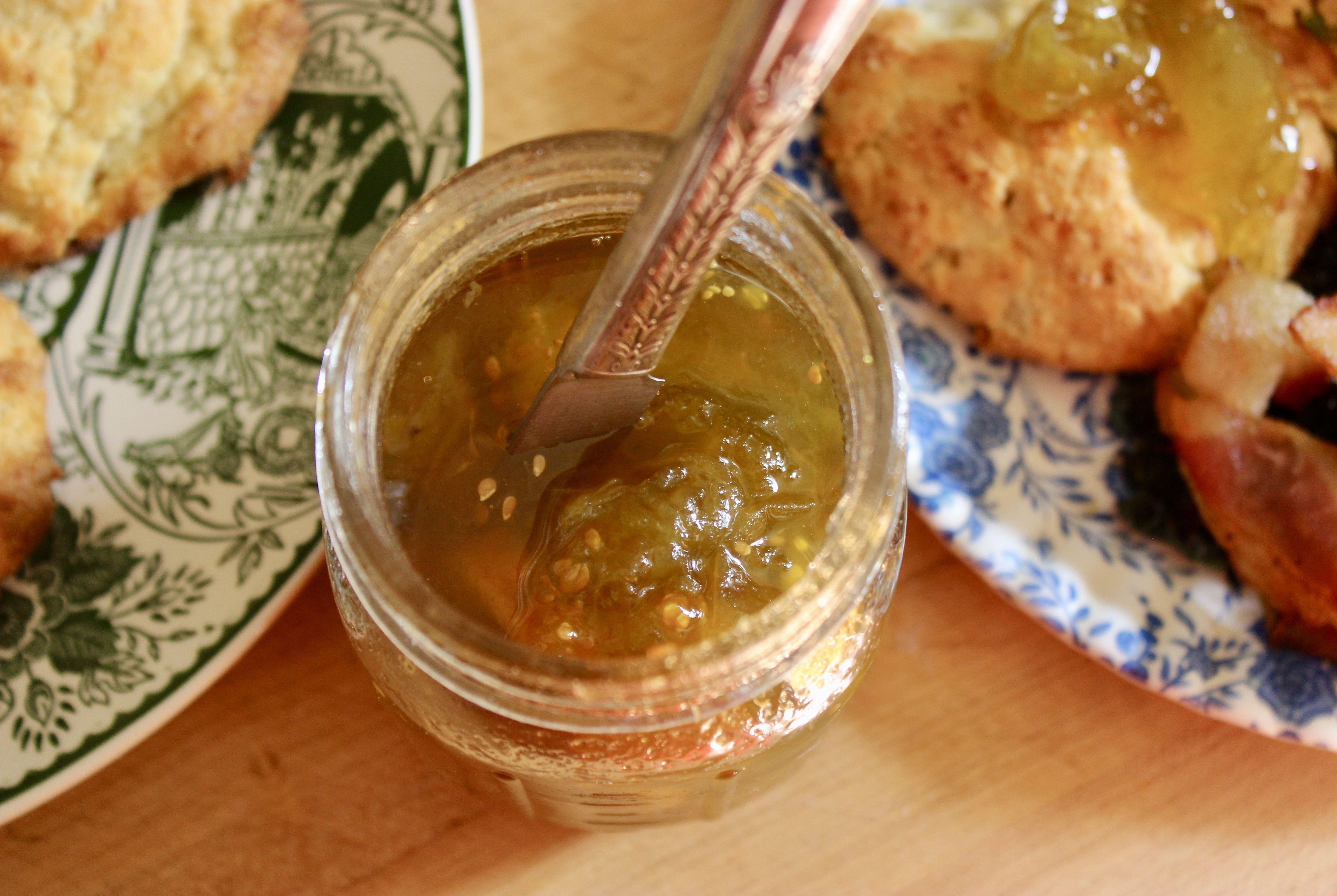 - Green tomato preserves- Lewis writes, “Their taste against a hot biscuit is very much like that of mild honey”. It’s true!