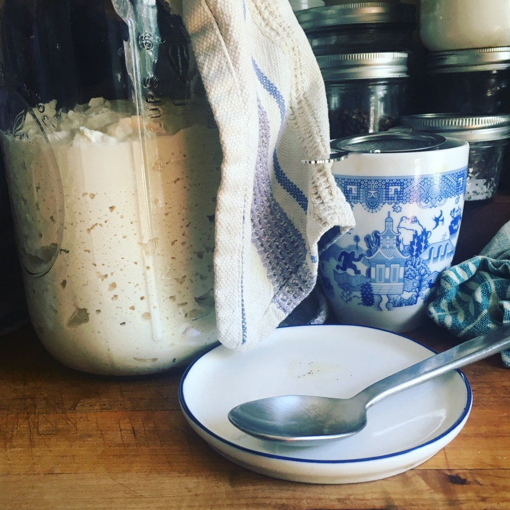 This is adapted from a (not gluten-free) recipe that I found on Food52. So if you do eat gluten, just use your starter and regular flour! My dear friend Boo looked after my starter for 5 weeks this summer while I was quarantining and visiting my mother in Canada. Boo does not eat dairy and made these crackers with olive oil. She was also working insane hours as a producer for a festival…. so if she was able to fit sourdough cracker making in to her busy schedule anyone can do it! Boo named my starter Henrietta (after Henrietta Lacks). Here is a picture of Henrietta….