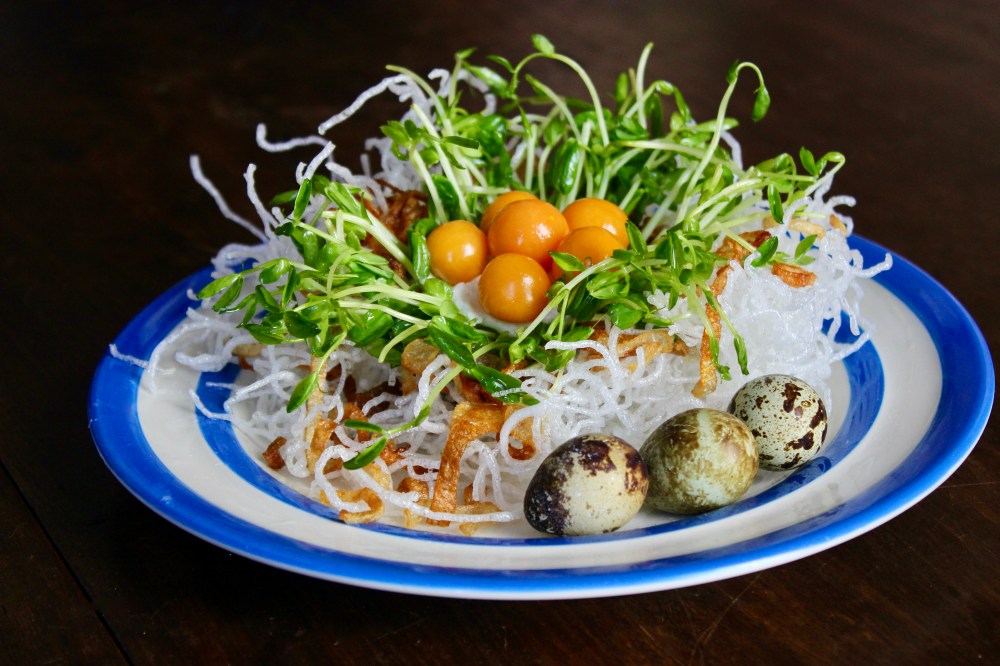 - Place each nest on a plate and festoon each one with about 1/2 cup of the fried shallots.