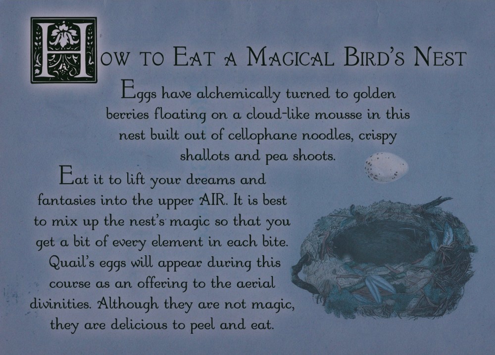 - Instruct the guests to break the nest and try to get a bit of each element in each bite!