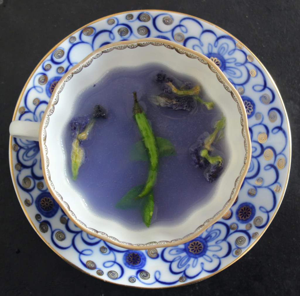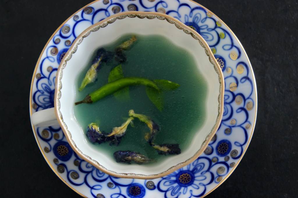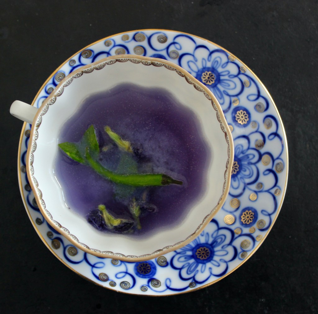 - 6 dried butterfly pea blossoms for every 1/3 cup broth