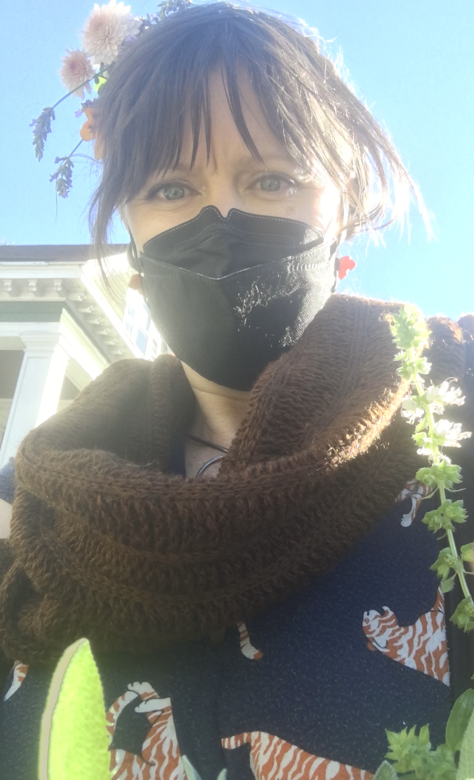 For the last two autumns my friend has invited me to come and harvest as much food as I want from her front garden. Last year she was renovating her kitchen and this year she was out of town. She, like me, does not like the idea of food going to waste. Last year I harvested 40 pounds of green tomatoes and carried them home on the public bus, festooned with lavendar, sage and basil.