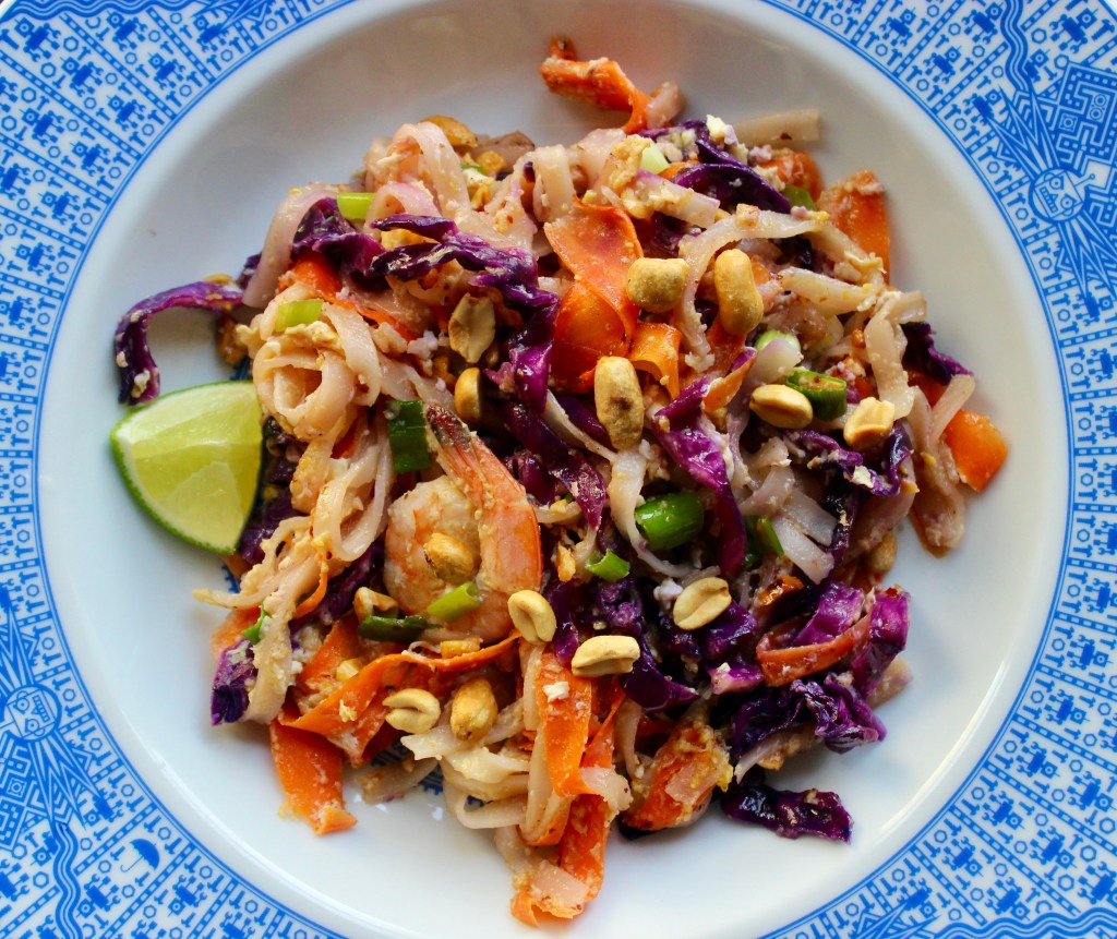I cook this Pad Thai, a lot. It started out as an obsession with this wonderful recipe from Chris Yenbangroom on Food52. For a while during the pandemic I was even sprouting my own mung beans! But then, the recipe evolved. Mung Beans are a bit of a pain to sprout or aquire and I often have lots of other vegetables because I belong to a CSA (Community Supported Agirculture) Farmshare. Also, I had a portion problem. I could easily eat the entire recipe myself because it was so delicious… but then I’d really eaten too much. But if I split it with my husband, I felt really annoyed that I had to share it. Awful right? To make a long story short, now I make extra “noodles” out of various vegetables (not bean sprouts) and I’ve increased the amount of sauce, egg and peanuts. It’s not an authentic Pad Thai but it is a very good way to pack a bunch of vegetables into your dinner. It also takes less than a half hour to make! I use shrimp. Feel free to replace with chicken or tofu or leave the extra protein out. It already has eggs and peanuts.