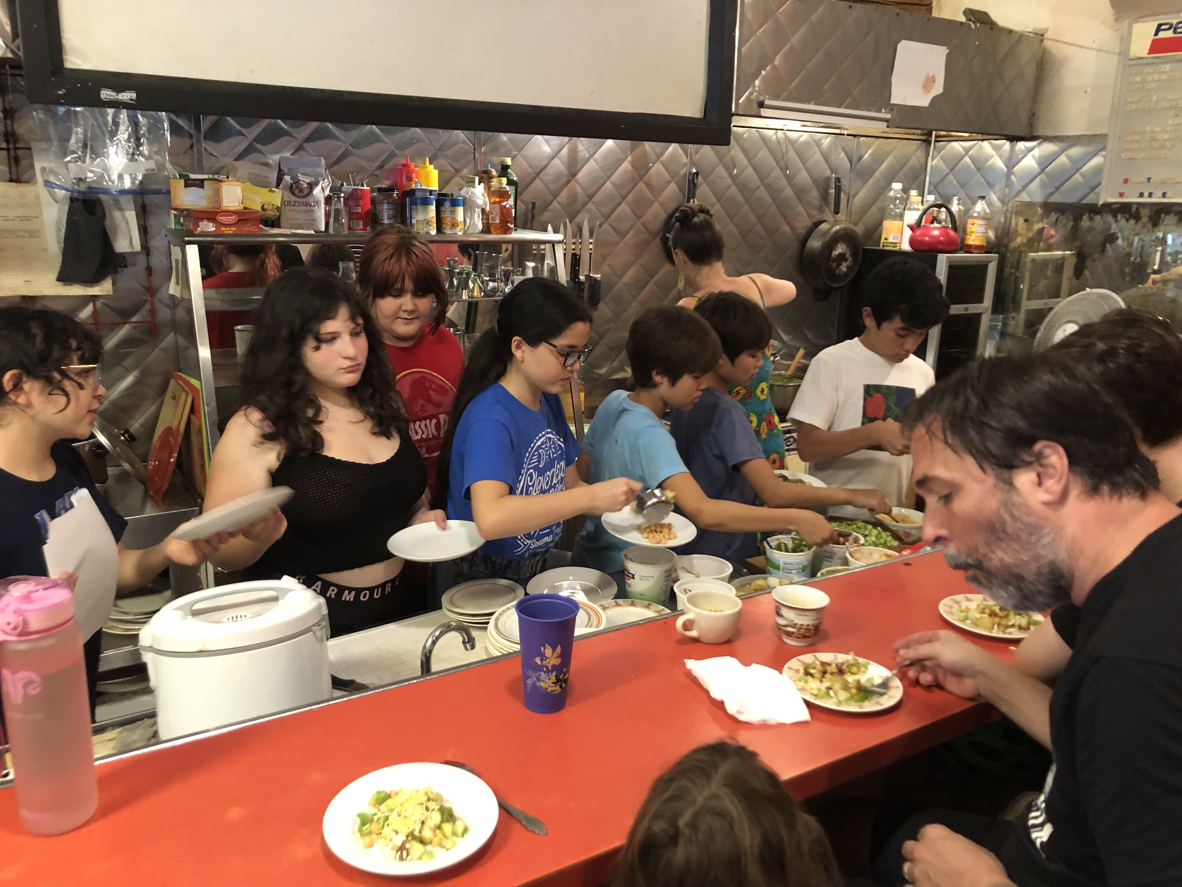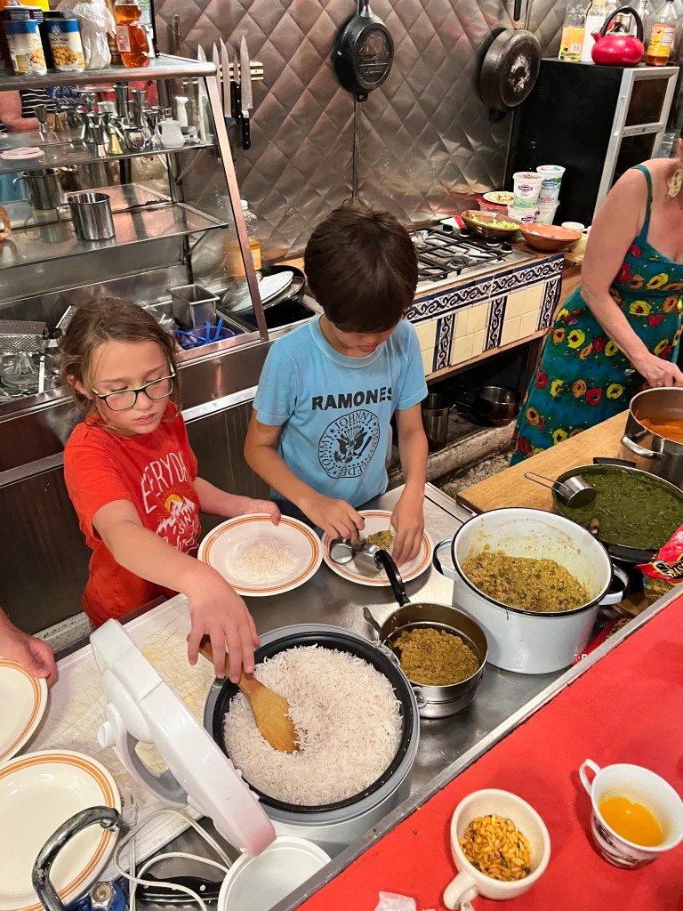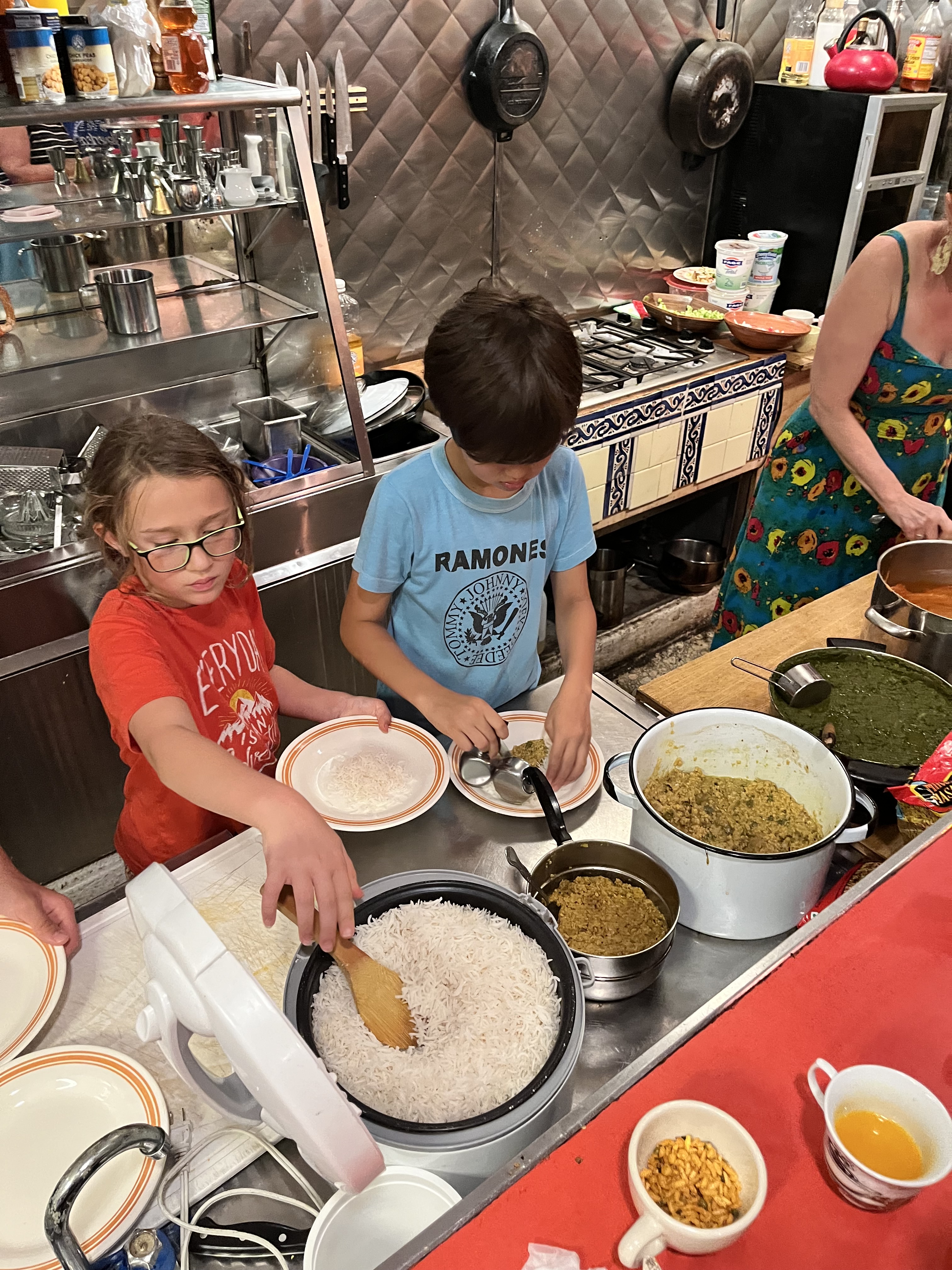 The kids serve up rice with their favourite dal at the meal for the parents