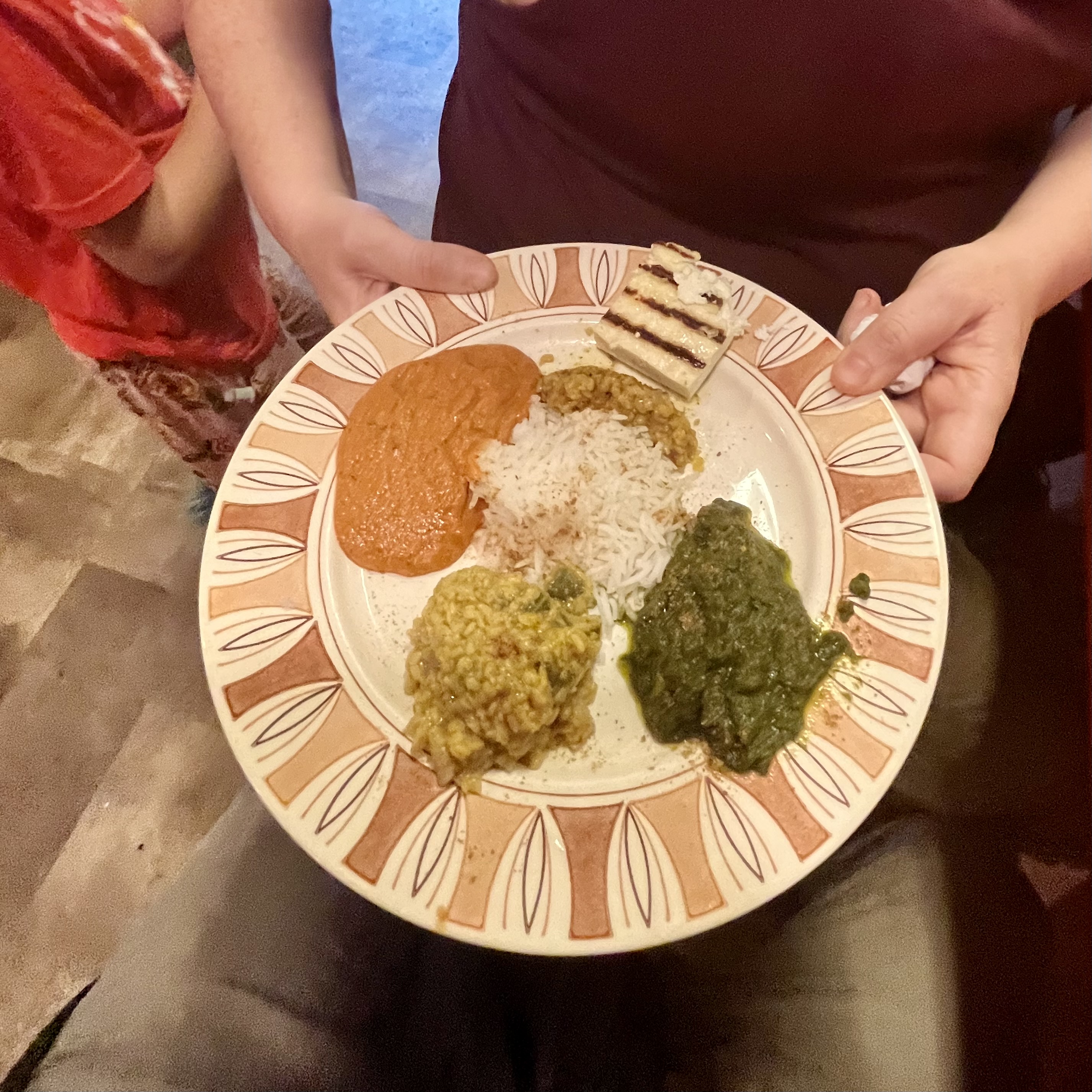 Tuesday- Paneer, Saag, Butter Sauce, fruit chutneys, Aloo Chaat, Kheer