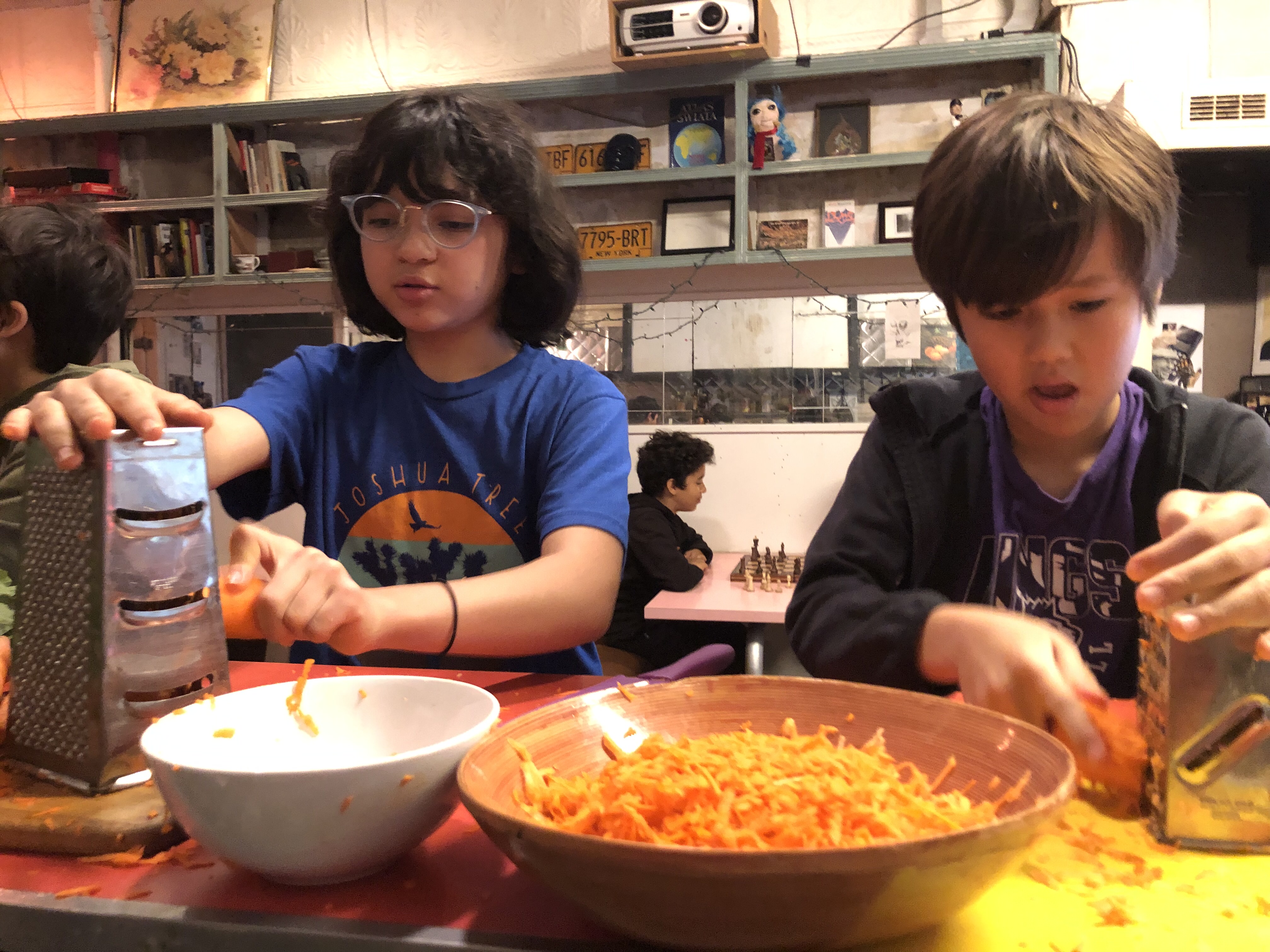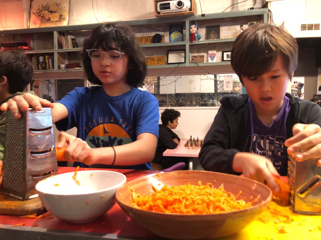 Each year, a small group of 5-15 year olds learn about ingredients and cooking techniques for a particular cuisine for a few days before designing and preparing a menu to serve to the parents on Friday. This year, we focused on Indian food. Honestly, it is strange that it’s taken us so many years to tackle this theme. Indian food is my favorite and one that I cook often. My husband has strong ties to India and his mother’s family all grew up there. So I had a lot of information and techniques that I was excited to share. We also got to ty a few things that were new and exciting for me to learn about. As always, we had beautiful vegetables from the 607 CSA (community supported agriculture) which drops off at the luncheonette. Indian food is particularly flexible to seasonal vegetable bounty!