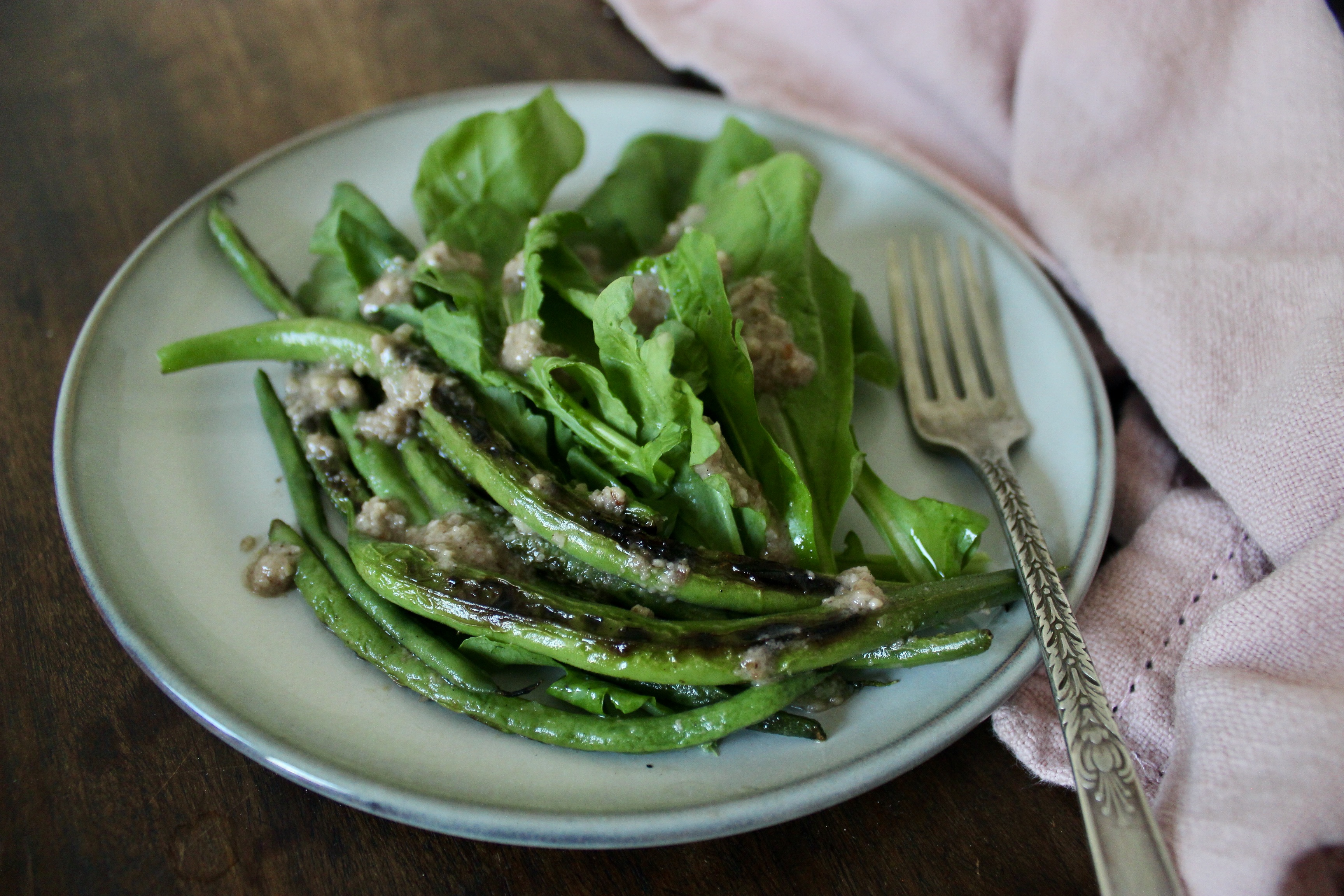 One of the best recipes I’ve ever made! This would make a fantastic side for Thanksgiving, where green vegetables are often in short supply. I also often make this as a quick lunch when my farmshare has sent me green beans. I make the dressing in big batches to keep in my fridge. This is vegan. Find the recipe for Blistered Green Beans with Walnut Dressing Here.