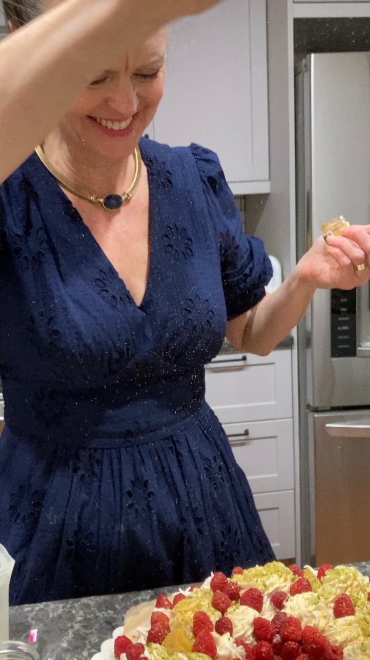 All of that said, I feel like I’ve found a way to make this pavlova beautiful, without getting stressed out. Something nice about this dessert is that almost all of it can be made in advance. All you need to the day of the party is assemble! So this recipe is really a friend to a working person who wants to bring a very impressive and festive desset to a holiday event.